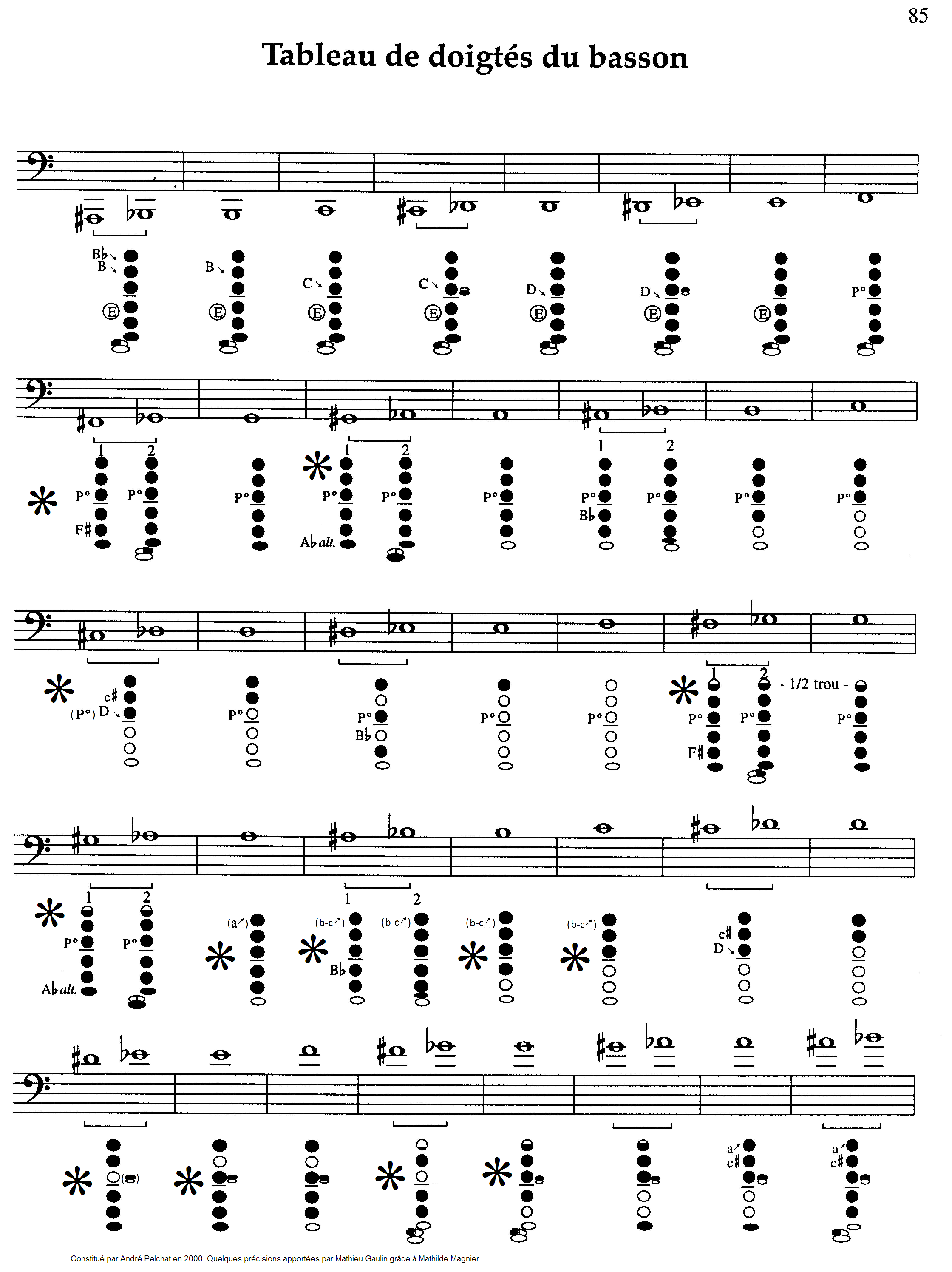 - Doigtés corrigés (Pelchat) de clarinette, basson