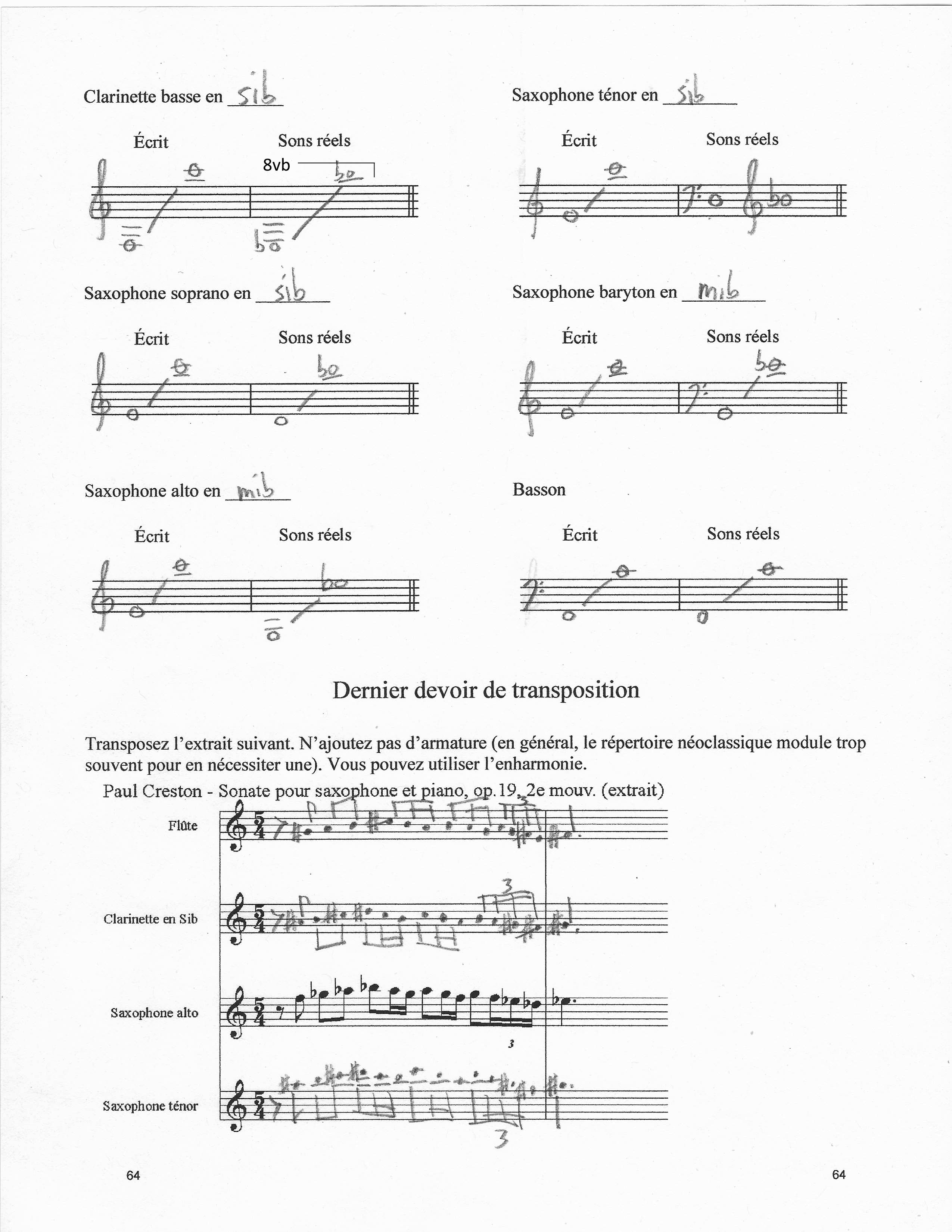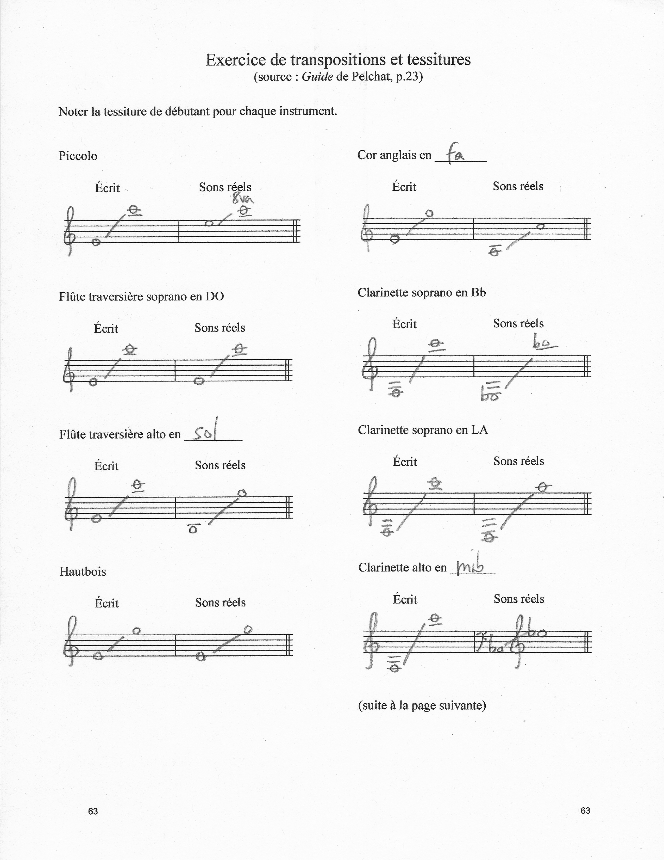 - Devoirs de physionomie : clarinette, saxophone, flute, basson