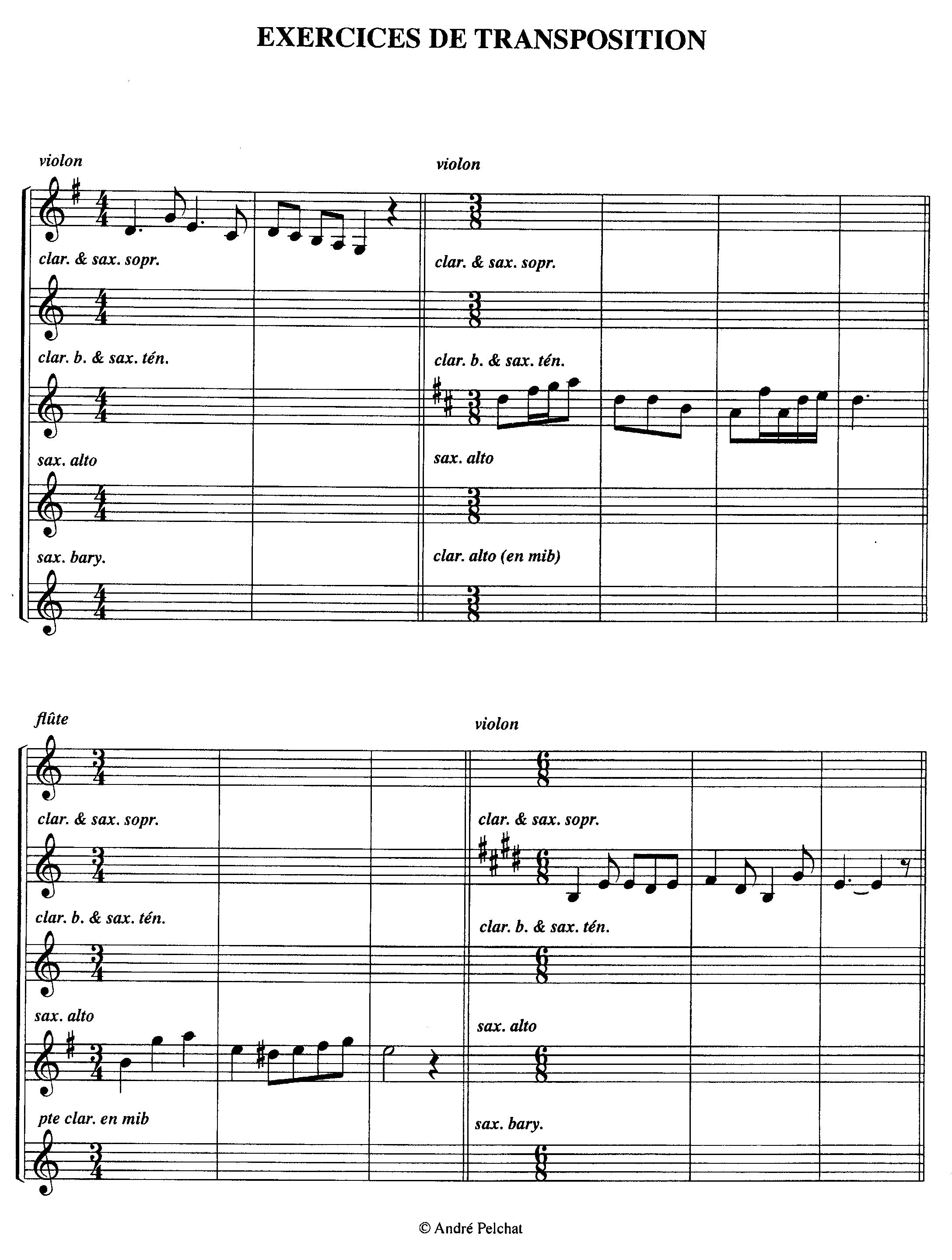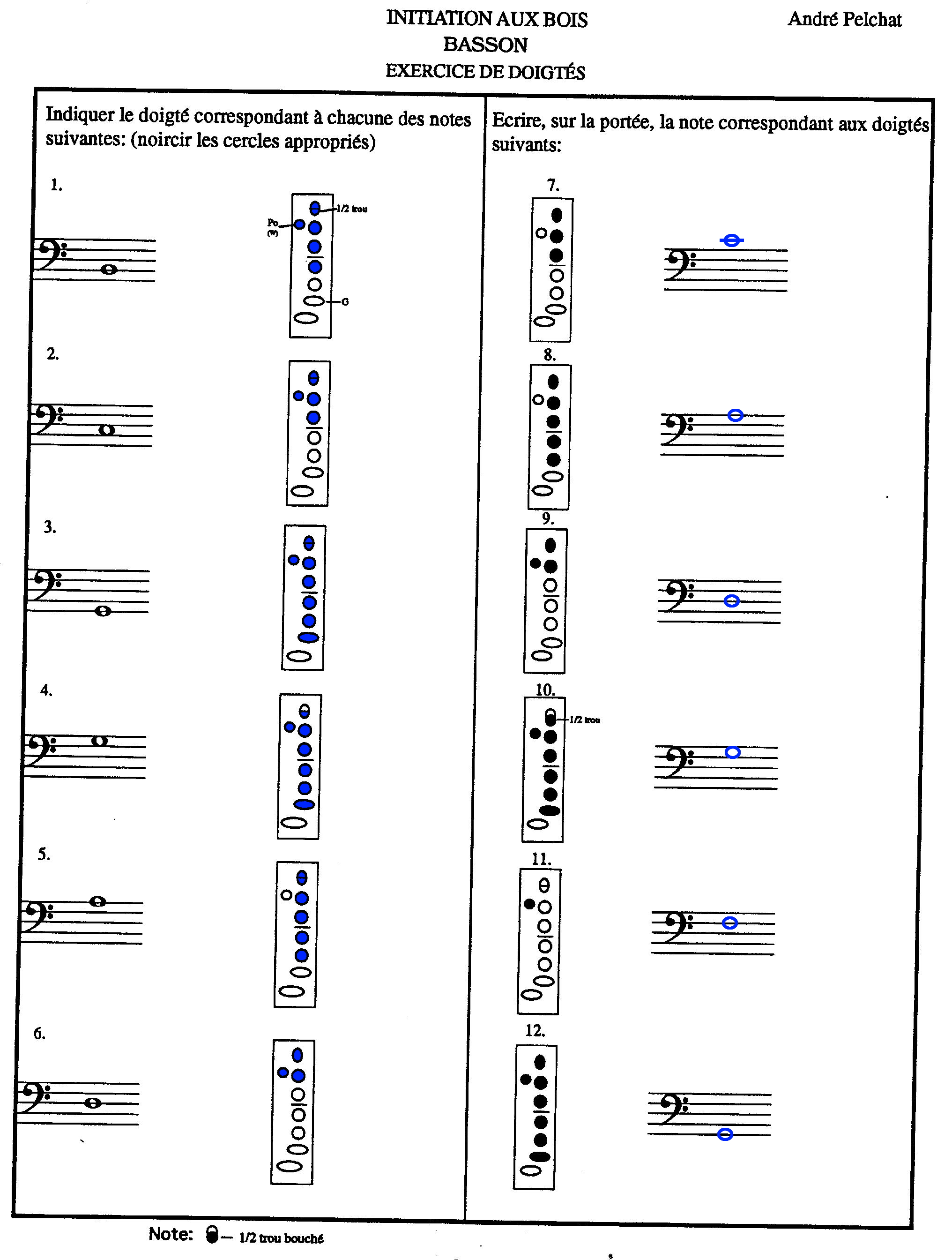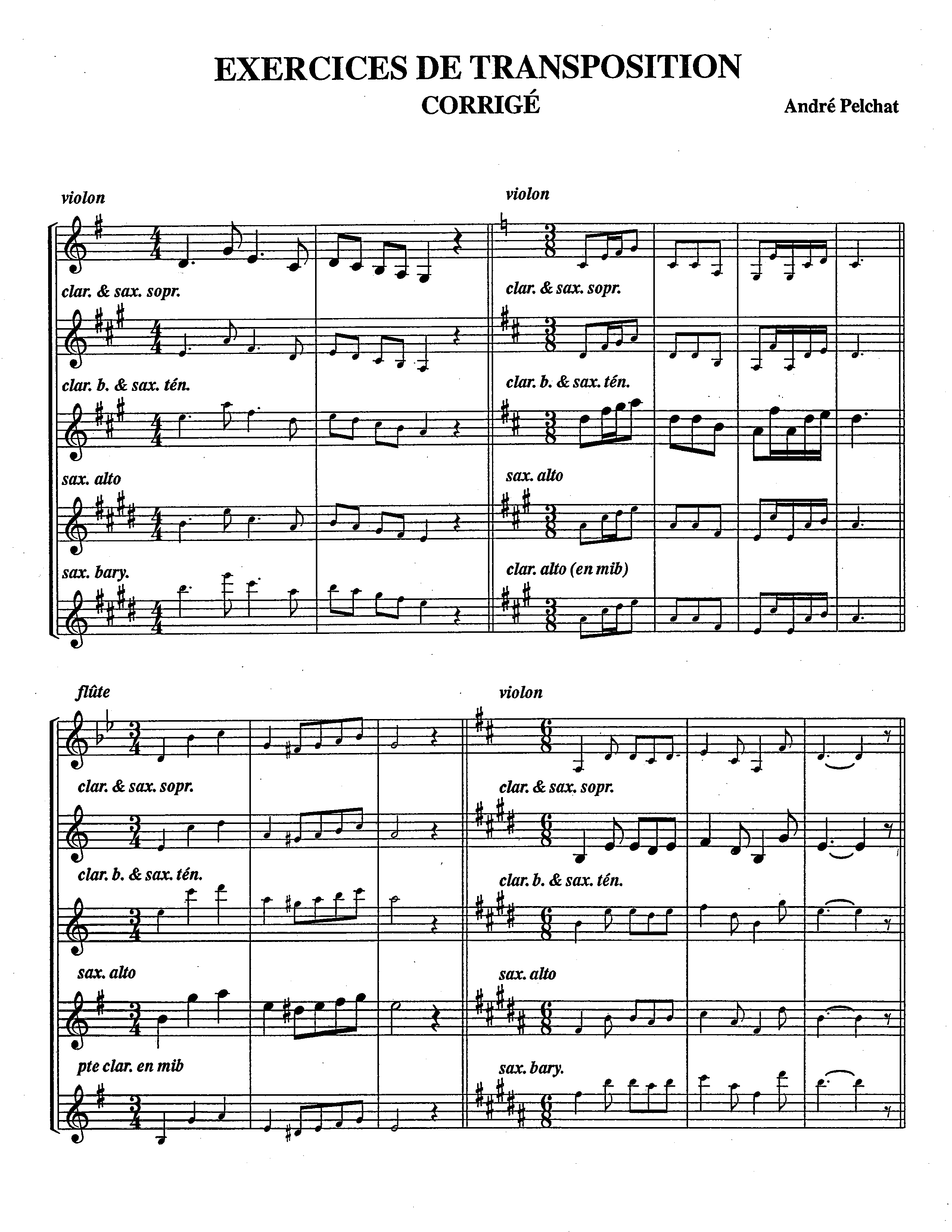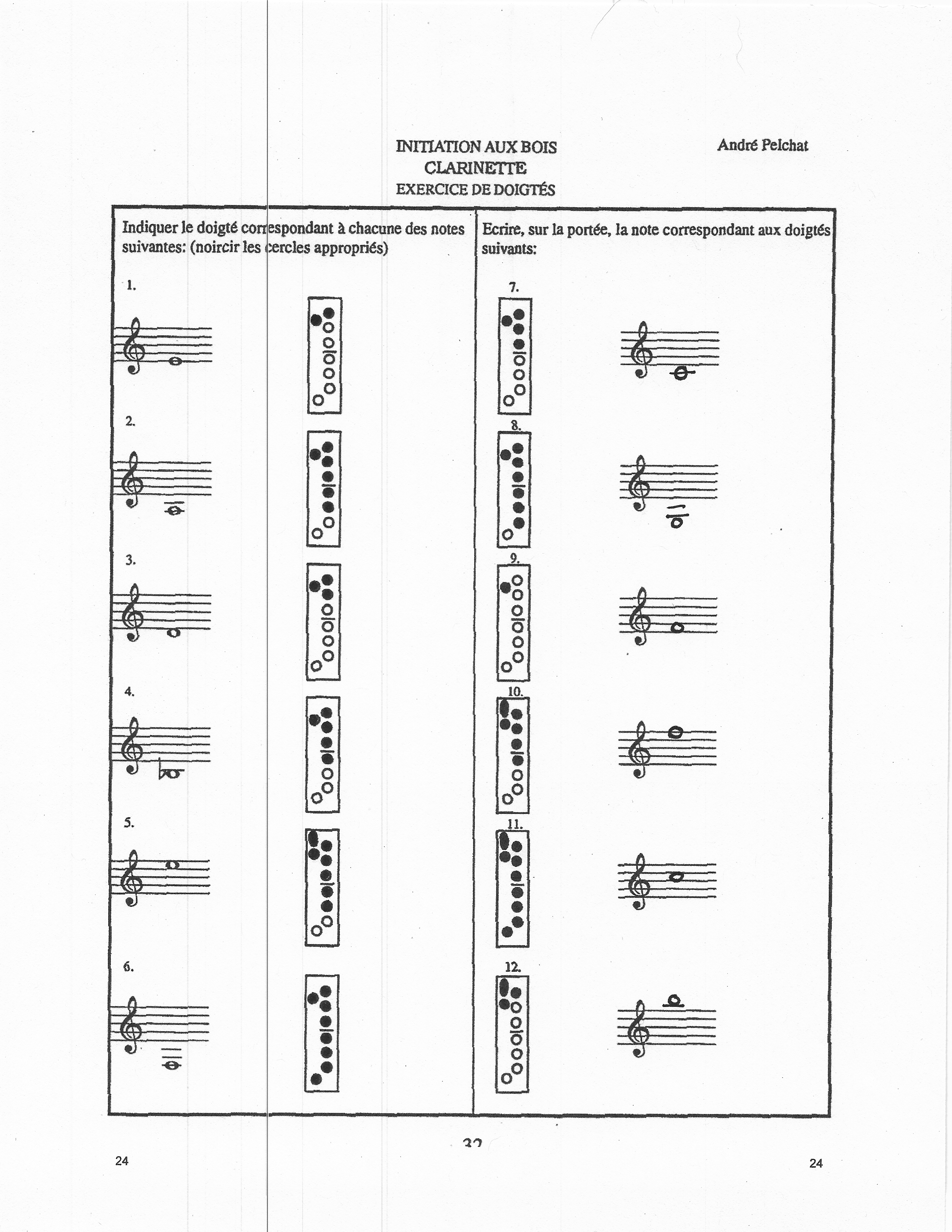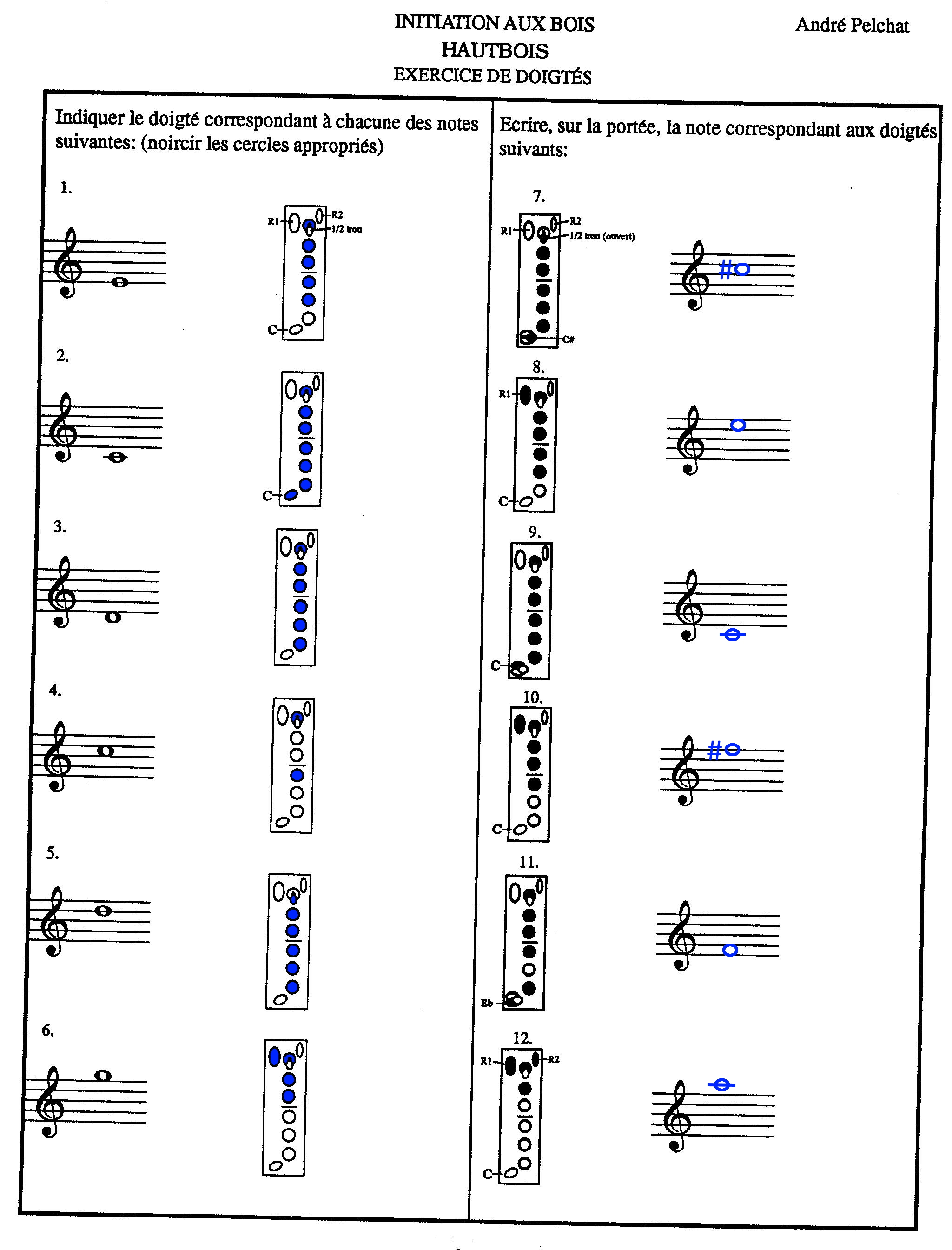 - Devoirs de doigtés (par André Pelchat) : clarinette, saxophone, flute, hautbois, basson